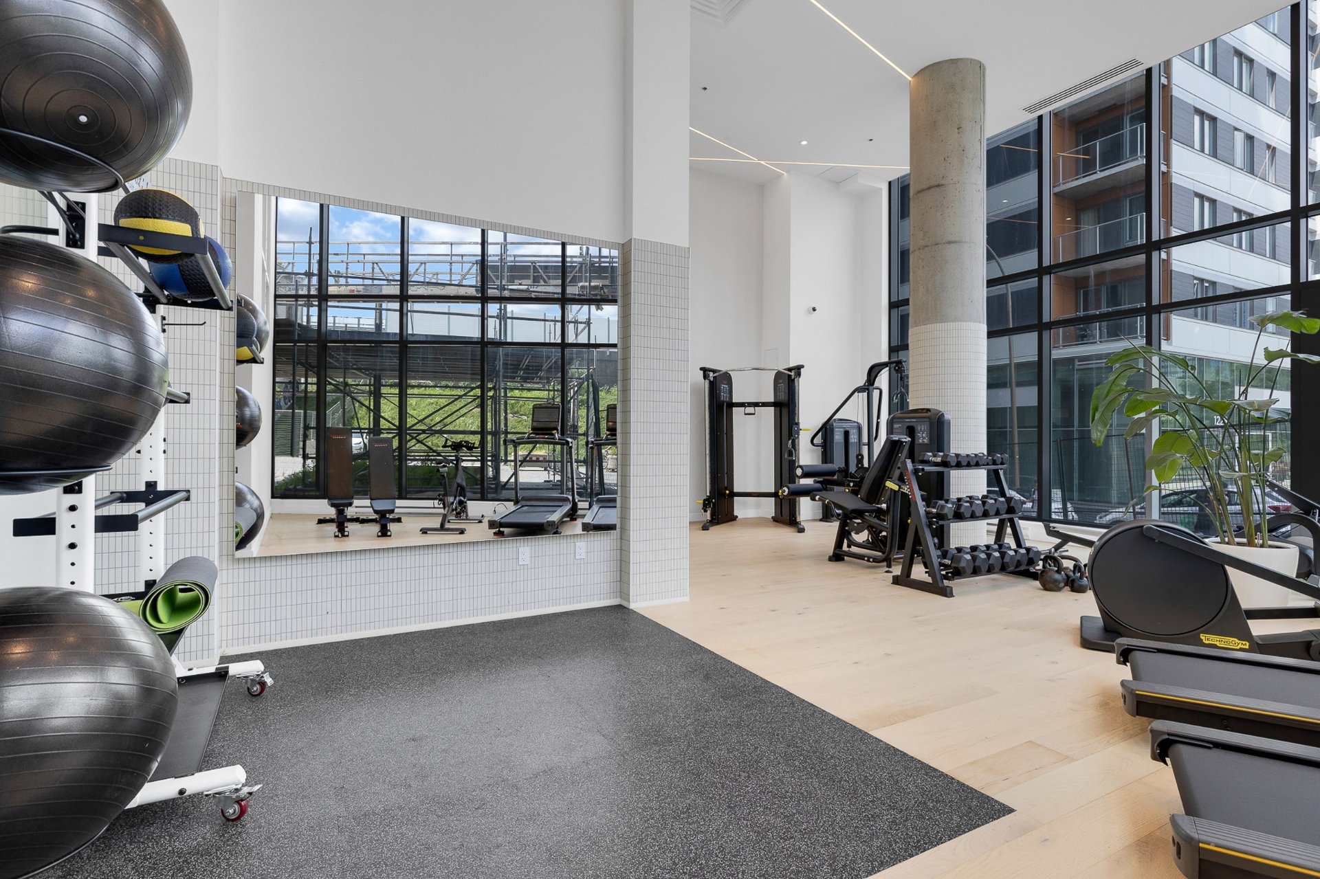 state-of-the-art fitness center, spacious and flooded with