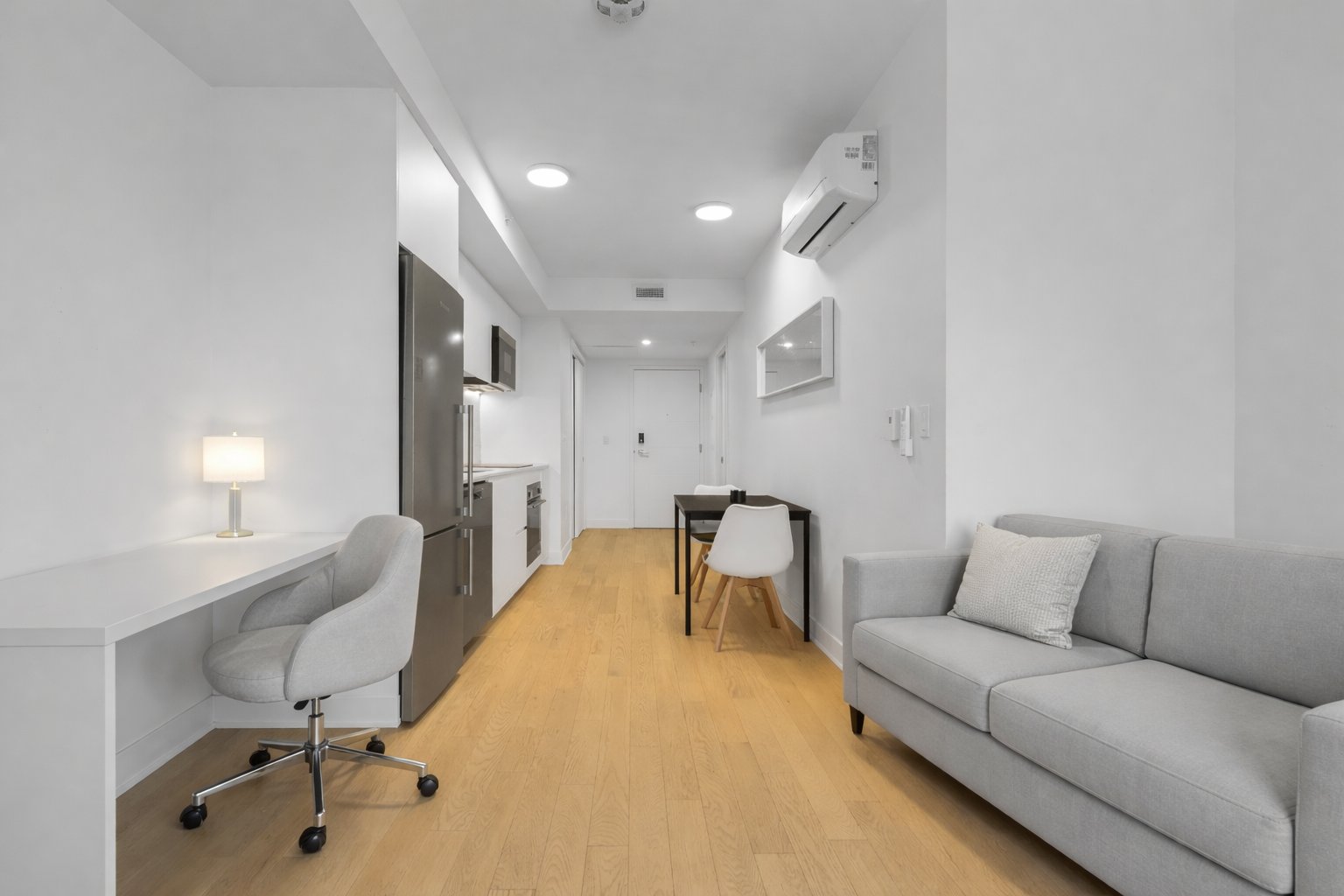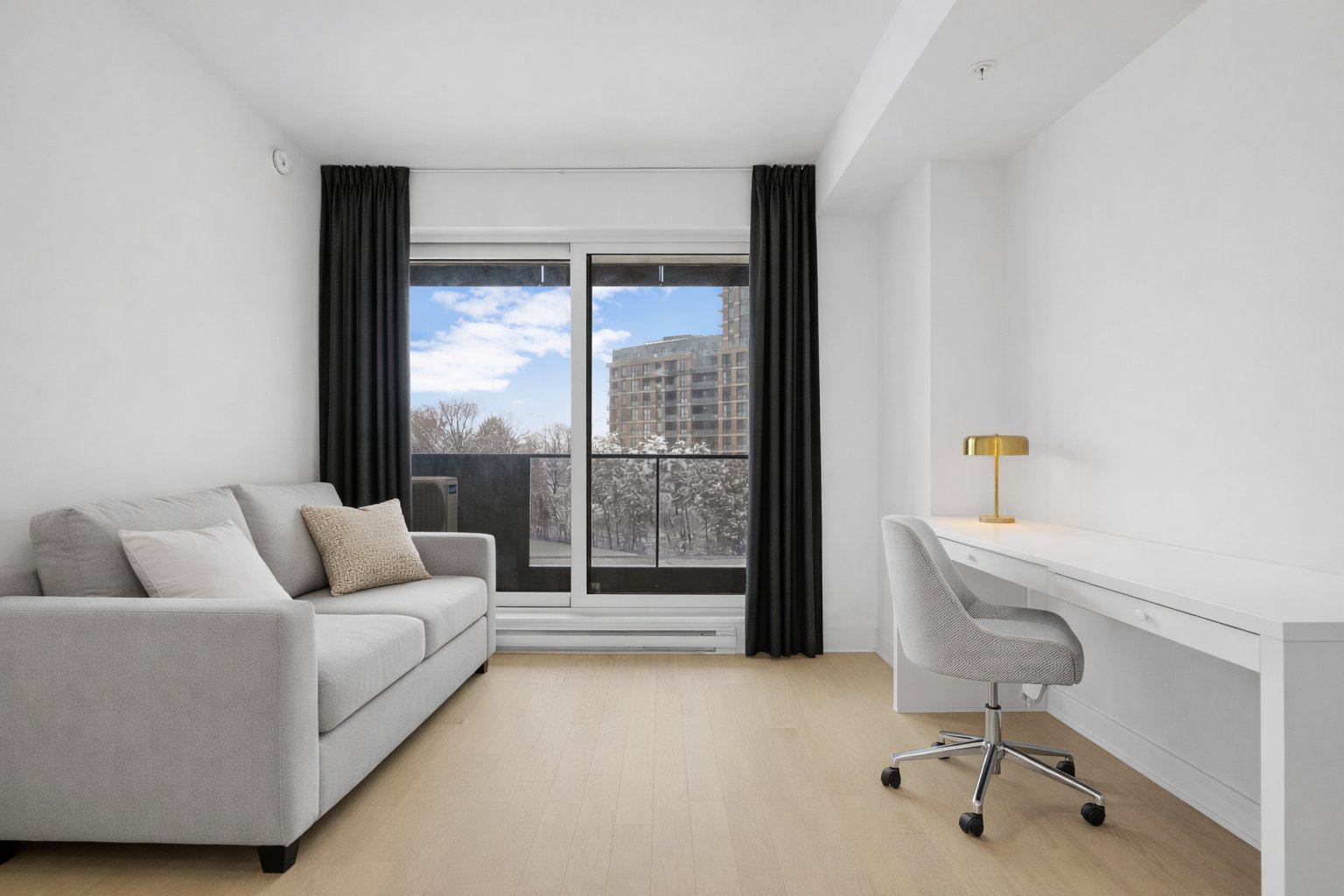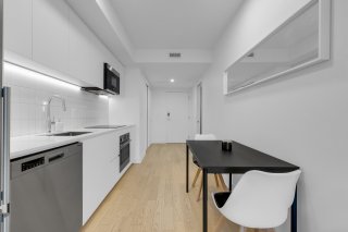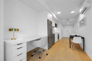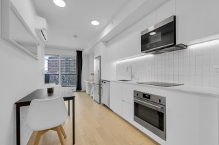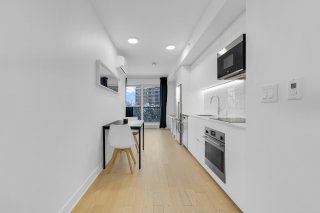 The Wellington on the Bassin: Griffintown's trophy address! Invest where design meets water. Imagine your mornings on the Lachine Canal and your evenings on an iconic rooftop terrace with a pool and 360° views of the skyline. Key features: -Light-filled prismatic architecture. - Premium finishes and chef-quality kitchen. - 5-star gym, boutique lobby, rooftop pool with BBQ area, billiards room, 24-hour security, and much more. Bright unit featuring a bed, office area, living room, and full kitchen. Spacious bathroom with glass-enclosed shower and laundry area. Private balcony with views of the Lachine Canal! Close to the REM and everything!