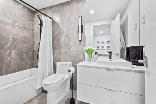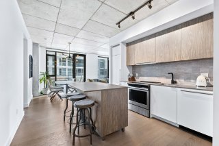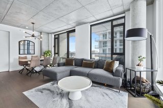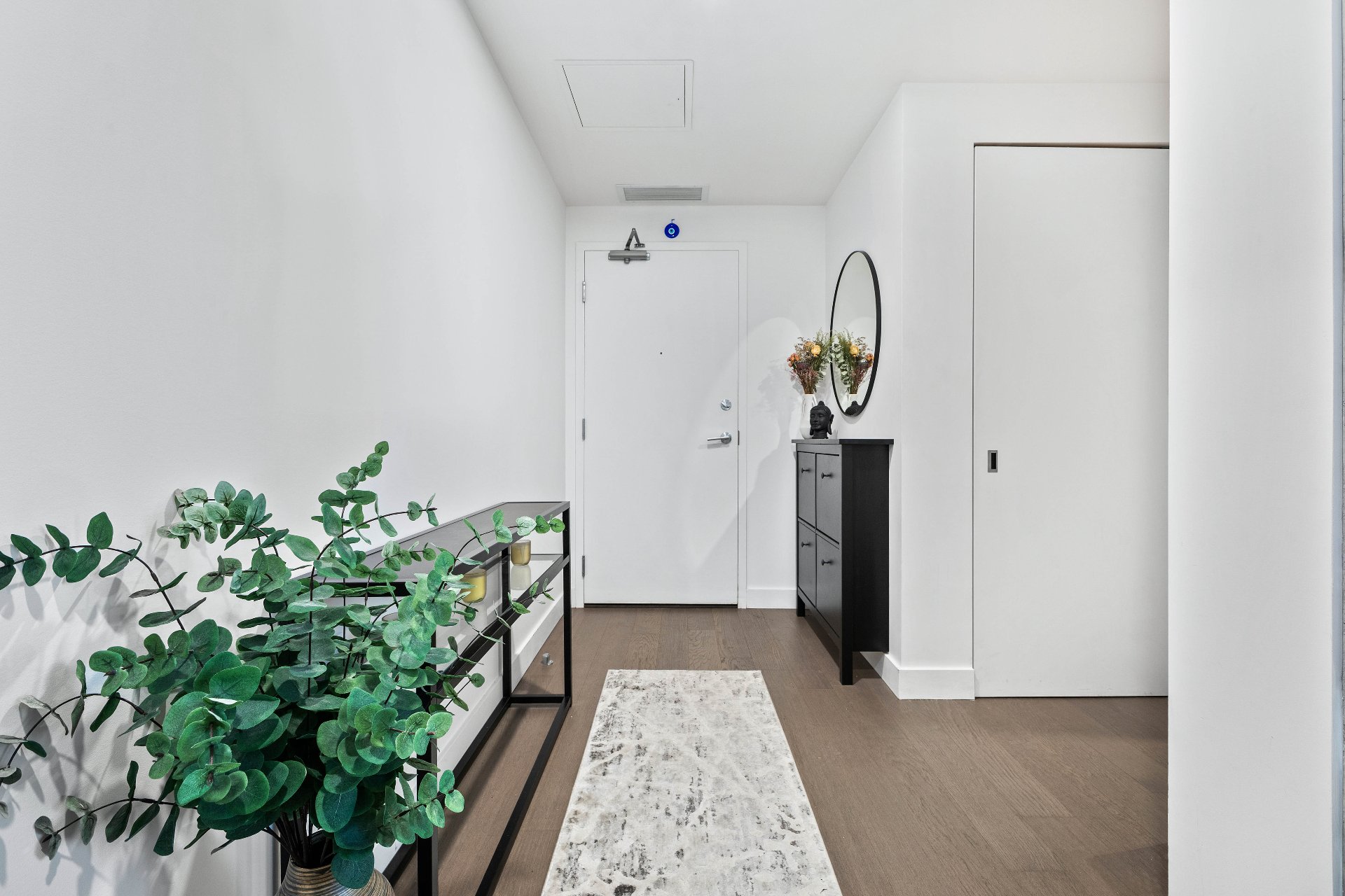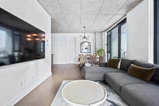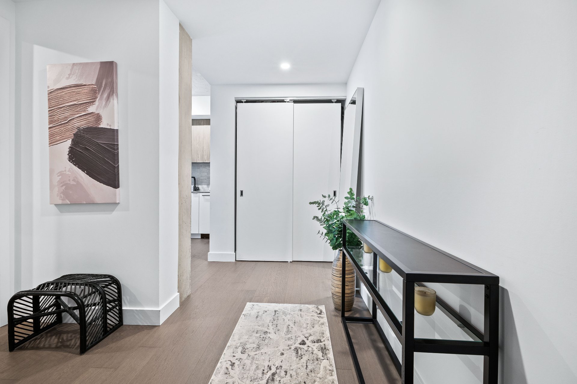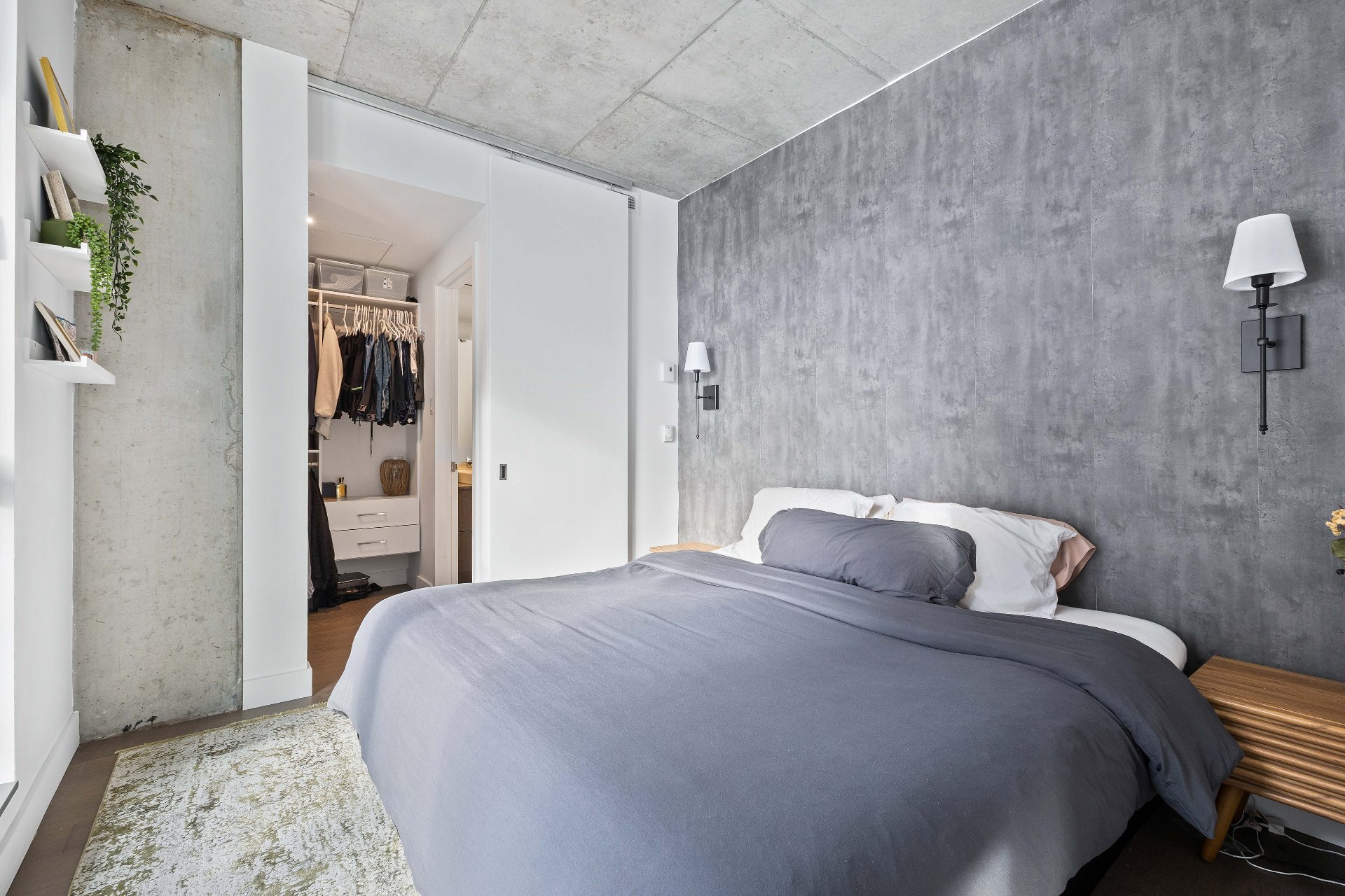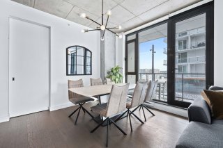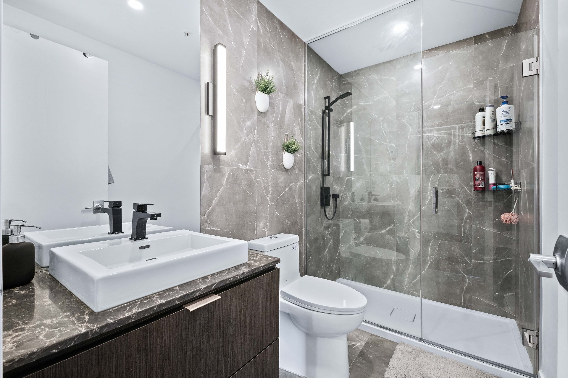 Stunning southwest-facing corner unit boasting exceptional natural light thanks to its generous windows. This condo features 2 bedrooms, 2 bathrooms, an open-concept living area, and a modern kitchen with quartz countertops. Central air conditioning and 3 balconies surrounding the unit allow you to fully enjoy sunny days. Located in the sought-after Cité Midtown project in Ville-Saint-Laurent, close to the metro, services, and with quick access to Highways 15 and 40. The building offers numerous amenities: concierge service, gym, common areas, and more. Indoor parking and storage are included. An opportunity not to be missed!
