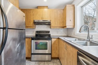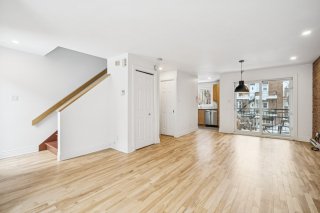 Located on De Champlain Street near Sherbrooke, this freshly renovated two-level condo (paint, flooring, vanity) offers a turnkey space just steps from Parc Lafontaine. The main floor features a living room, dining area with a brick wall, powder room, and a modern kitchen with ample storage. Upstairs, two comfortable bedrooms and a full bathroom. Stunning private terrace on the top level. Outdoor parking included. Immediate occupancy.
