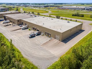 Industrial space of 15,058 sq. ft. (12,566 sq. ft. ground floor + 2,492 sq. ft. mezzanine) with partially built-out offices. Clear height of 24 ft, 2 loading docks, and 1 oversized drive-in door. Strategically located along Highway 20. Rent: $11.00/sq. ft. + $1.97/sq. ft. (operating costs and property taxes).