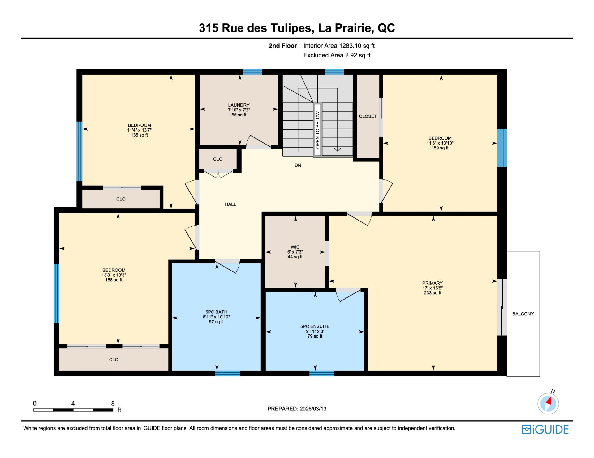 4 spacious bedrooms located on the same level.