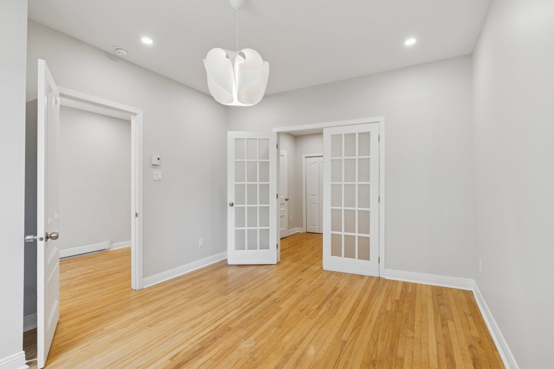 bedroom-separated by a french door), a modern kitchen with