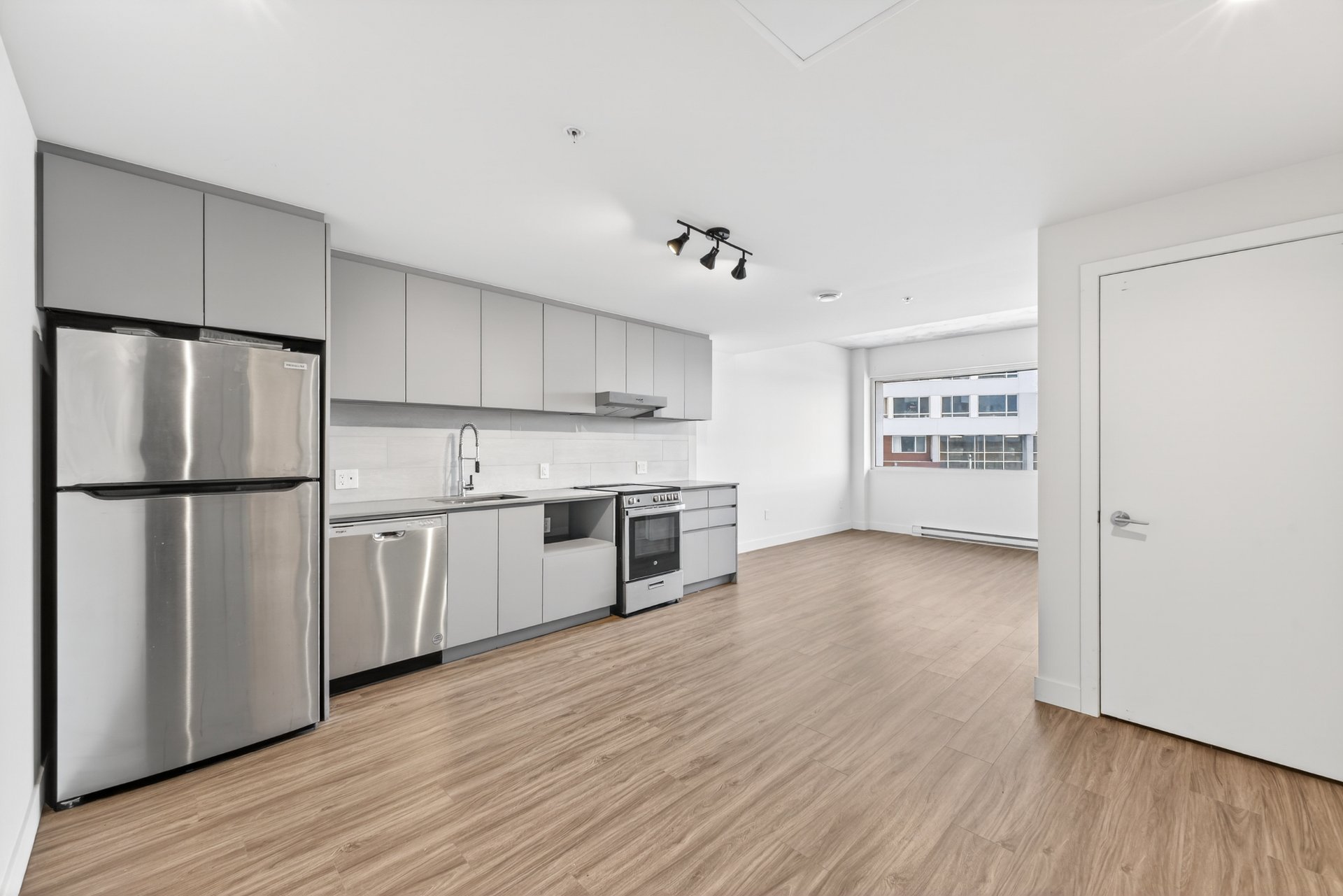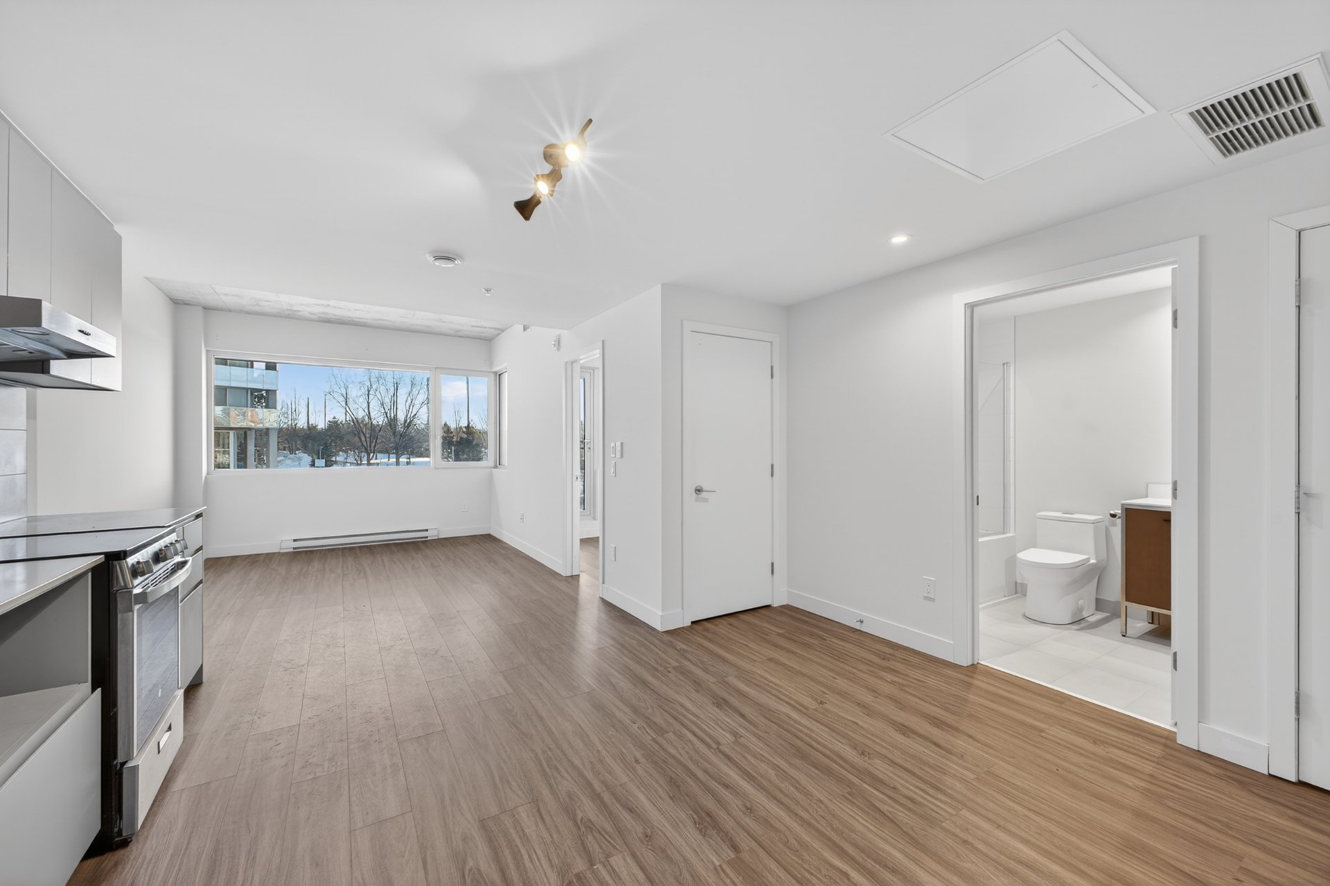 Welcome to Cité Nature. This bright 568 sq. ft. offers an open-concept layout filled with natural light, ideal for relaxing or working from home. The unit comes fully equipped with fridge, stove, dishwasher, washer, and dryer. Enjoy excellent amenities including multiple gyms, indoor and outdoor pools, and a rooftop terrace. Ideally located near Parc Maisonneuve, the Olympic Park, and the Botanical Garden, with easy access to grocery stores, shops, public transit, bike paths, and major roadways. Photos are for illustrative purposes only; actual unit may vary. Studios to 2 bedrooms unit are also available.