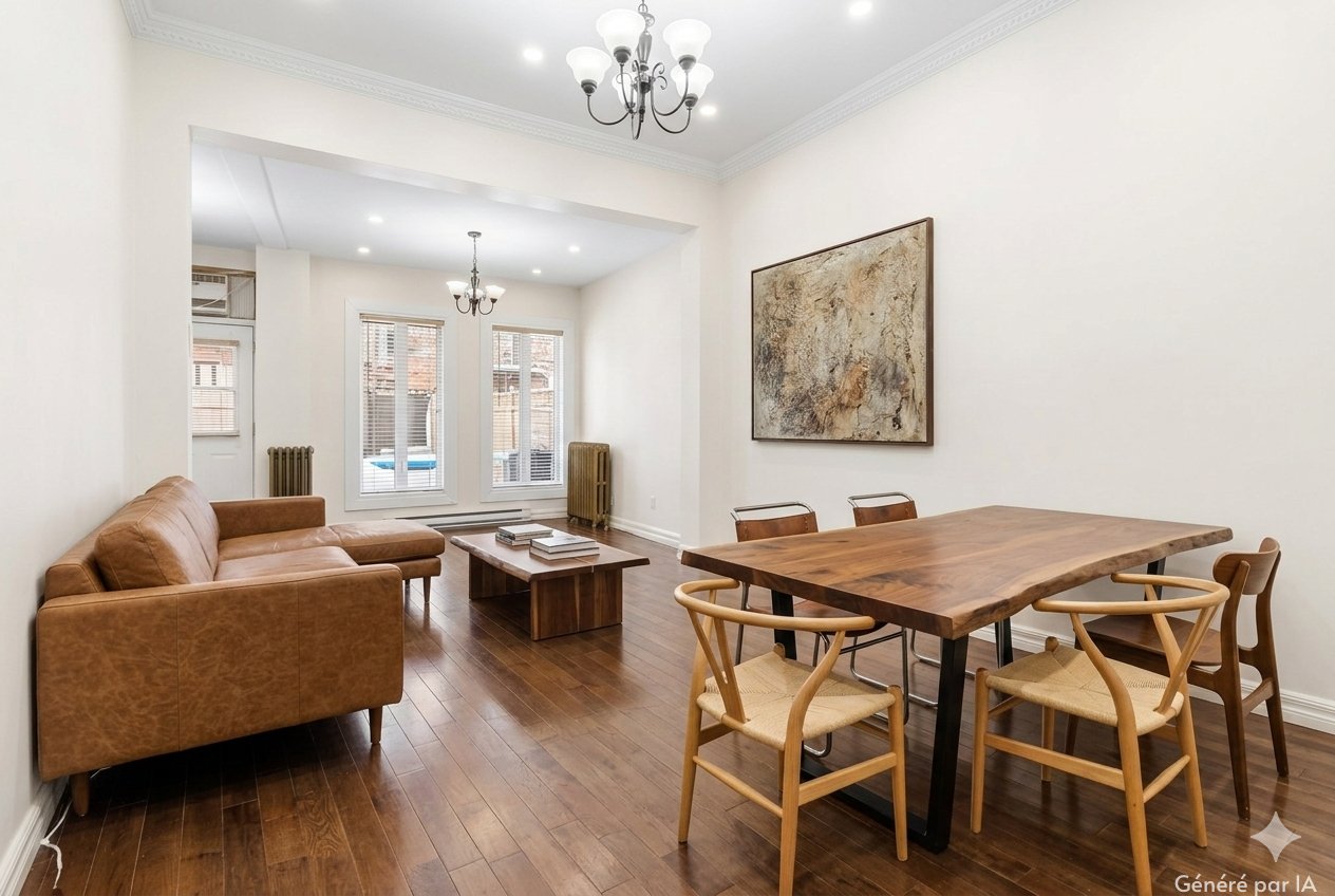 Discover the timeless charm of this 1910 row house at 5896 Jeanne-Mance, in the heart of Plateau-Mont-Royal. With a classic façade & exposed red brick walls paired with rich patina hardwood floors for elegance. Soaring 10-ft ceilings for a spacious feel, skylight natural light, charming Juliette balcony. Spacious kitchen: dual sinks & cooking zones; bedrooms including a generous primary; refreshed bath + powder room; versatile basement; backyard oasis in the city with alley parking. Steps from Mile End & Little Italy--cafés, parks, shops, transit. With a Walk Score of 97 and Bike Score 100 it doesn't get any better than this!