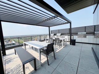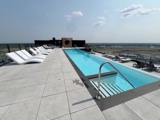 * Rooftop Landscaped terrace with outdoor swimming pool,