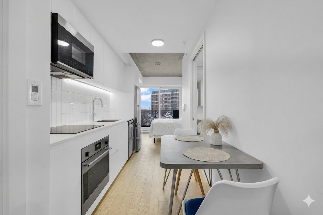 Wellington sur le Bassin : L'adresse trophée de Griffintown! Investissez là où le design rencontre l'eau. Imaginez vos matins sur le Canal de Lachine et vos soirées sur un toit-terrasse iconique avec piscine et vue à 360° sur le skyline. Atouts clés: -Architecture prismatique baignée de lumière. - Finitions nobles et cuisine de chef. -Gym 5 étoiles , lobby boutique, piscine sur le toit avec coin BBQ, salle de billard, Sécurité 24 heures et bien plus. Unité lumineuse avec lit, coin bureau, salon et cuisine complète. Grande salle de bain avec douche vitrée et buanderie. Balcon privé avec vue sur le canal Lachine! À proximité du REM et de tout!
