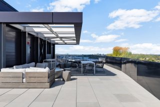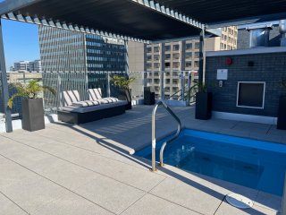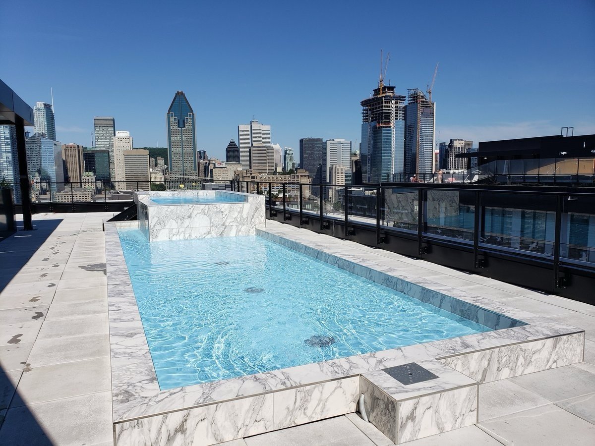 * Terrasse paysagée sur le toit avec piscine extérieure