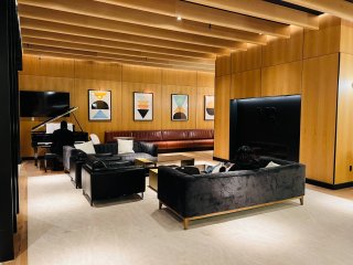 * Salon avec espace détente et piano-bar, salle de