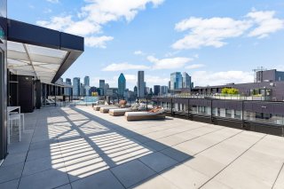 imprenable sur la ville grâce à ses baies vitrées. Ce condo