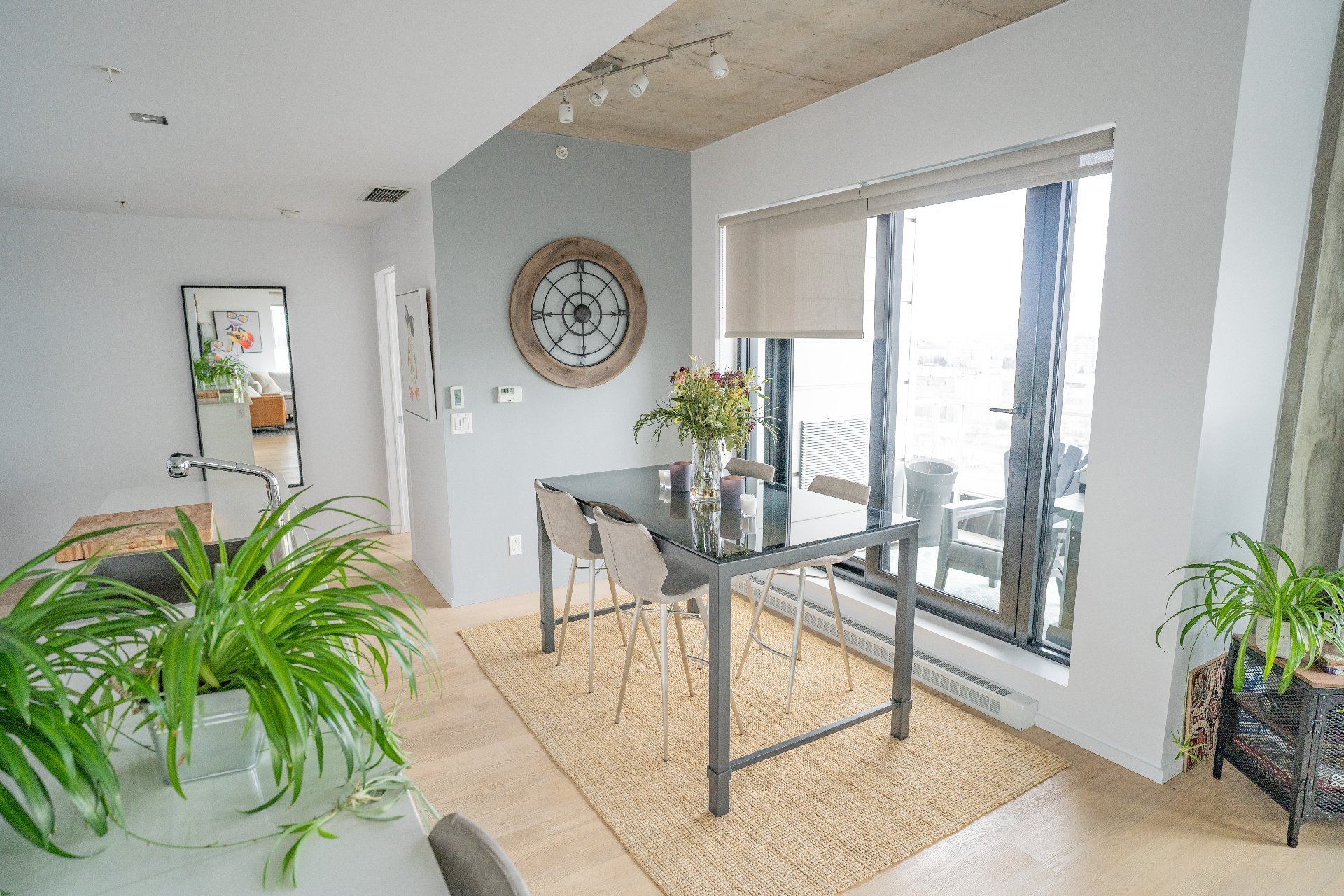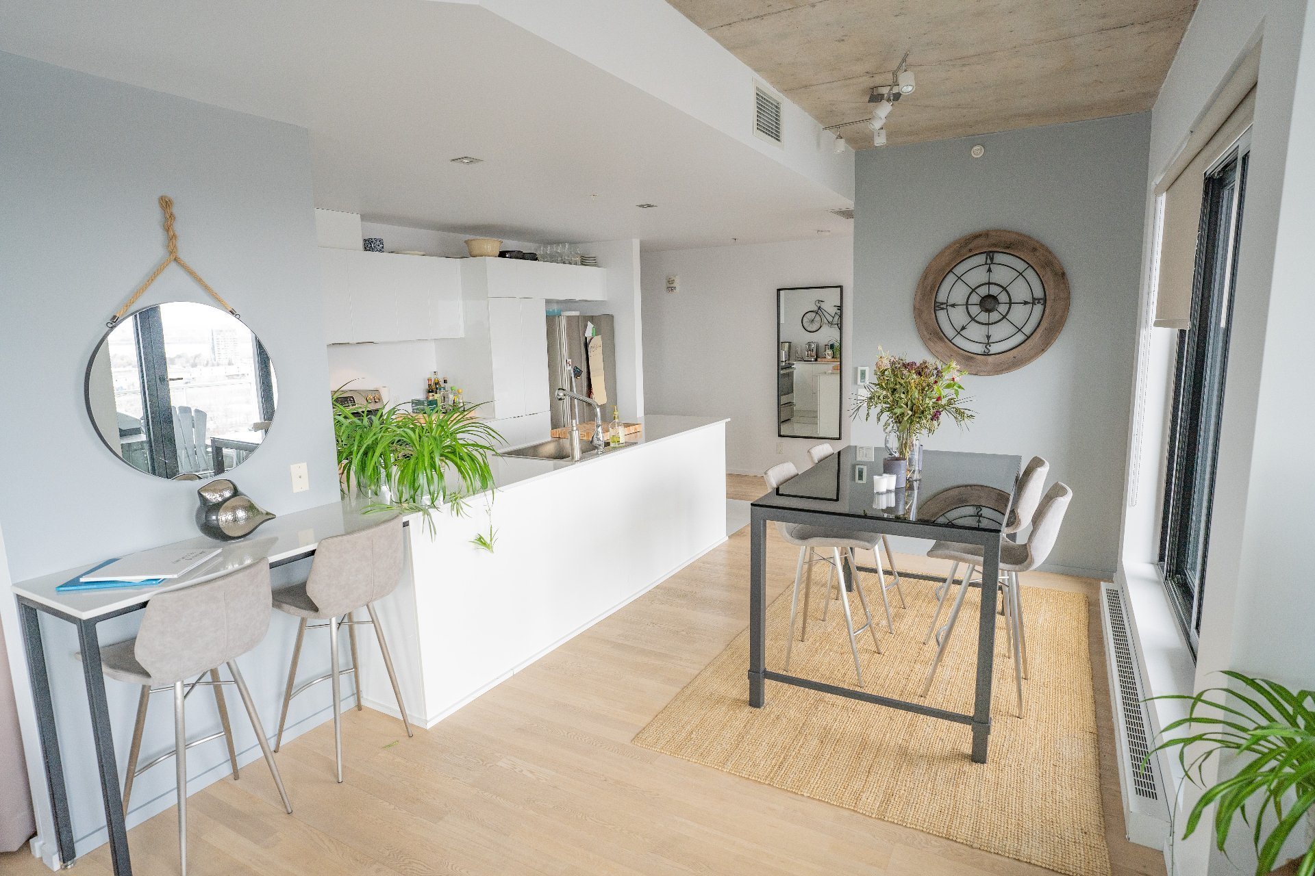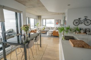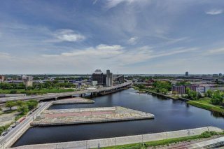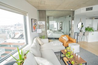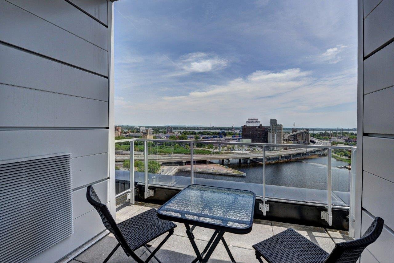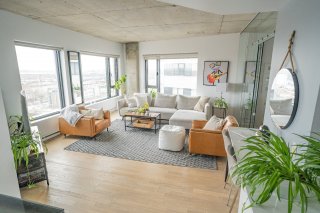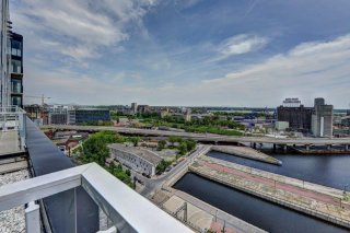 Dans le quartier branché de Griffintown, superbe condo unité de coin avec magnifique vue sur l'eau. Sa grande fenestration nous permet aussi d'admirer la montagne. Cet unité spacieux comprend deux chambres, deux salles de bain, deux balcons, un garage intérieur et un rangement.