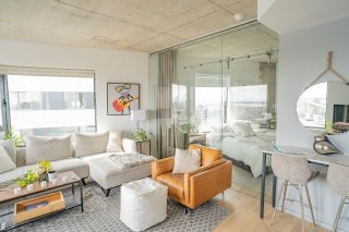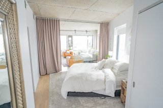 -La 2e chambre est séparée du salon par un mur de verre