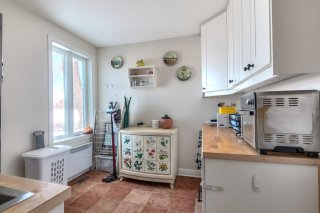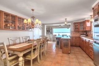 La cuisine baignée de lumière, dotée d'un îlot central,