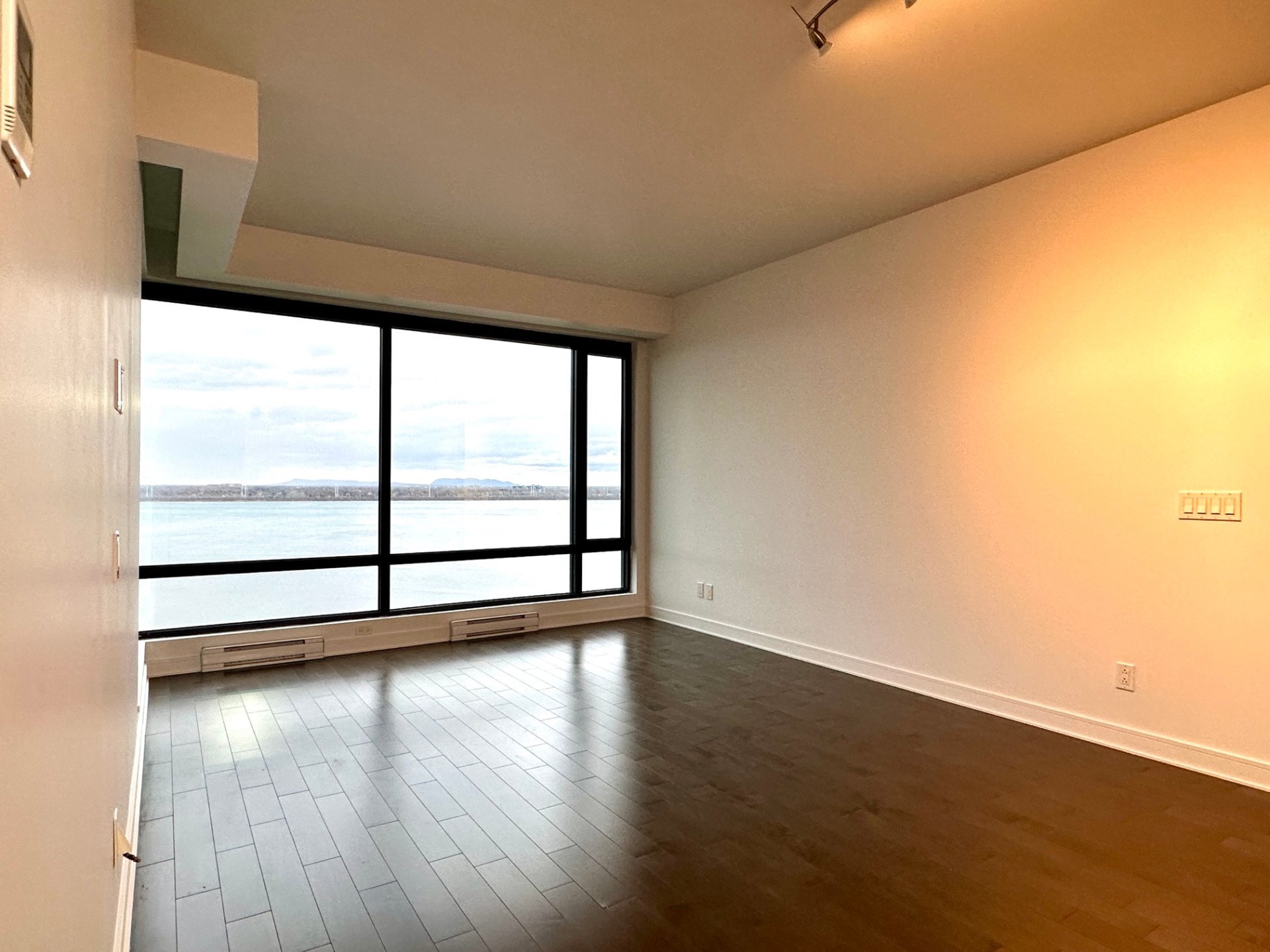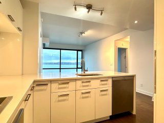 Situé dans le complexe Evolo, ce condo de 900 pieds carrés à louer comprend 2 chambres, 2 salles de bains et 2 stationnements en tandem. Il offre un salon spacieux avec de grandes fenêtres et une vue panoramique sur le fleuve, une cuisine moderne avec îlot central et électroménagers haut de gamme. La chambre principale dispose d'un garde-robe walk-in et d'une salle de bain attenante luxueuse. Le condo comprend aussi un balcon privé, une salle de lavage et des espaces de rangement pratiques, pour un confort optimal.