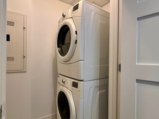 Le condo comprend également une salle de lavage avec une
