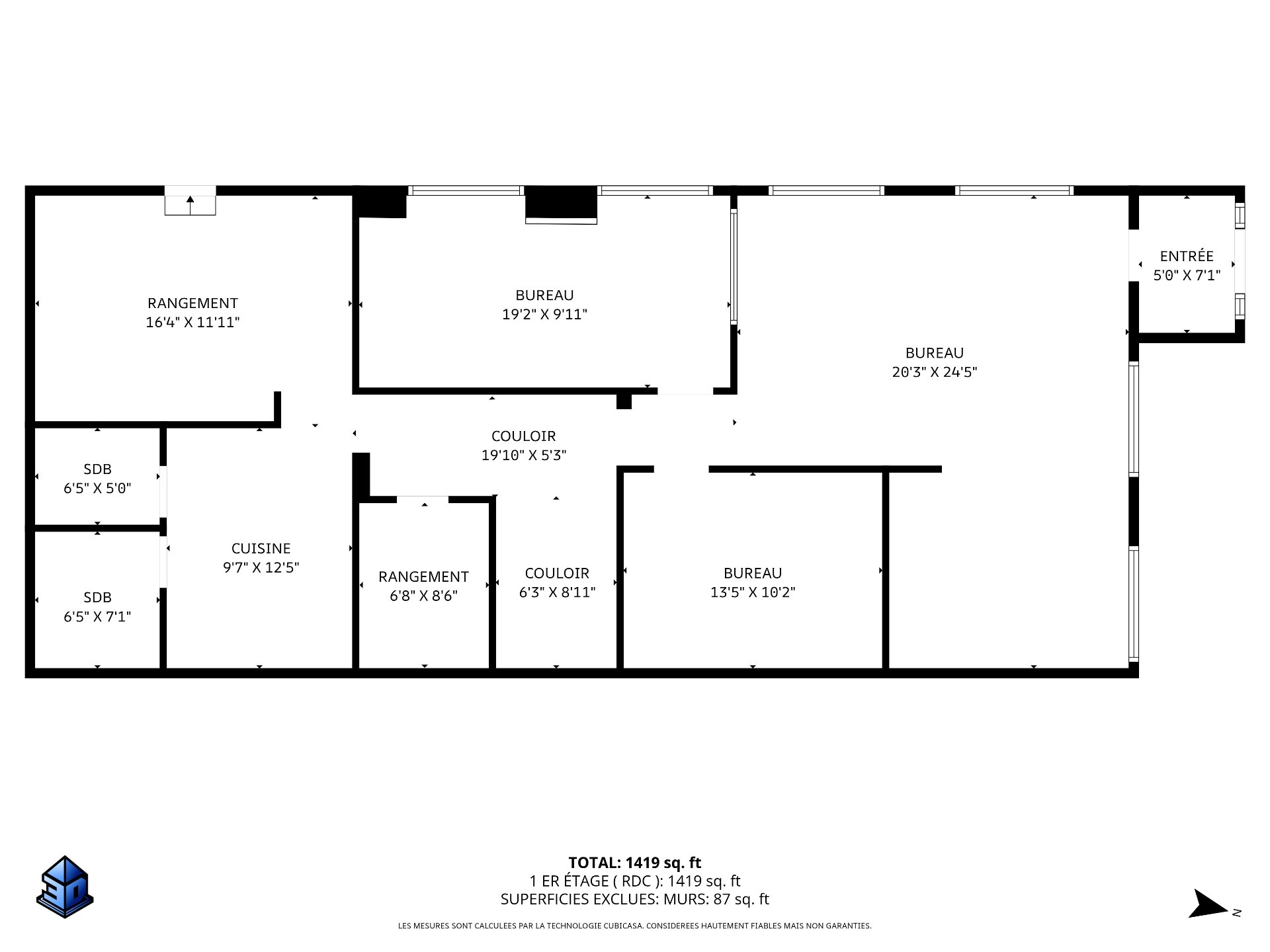 * Hauteur libre : 18 pieds (section entrepôt/garage)