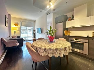 Espace compact de 550 pc mais très fonctionnel. 1 chambre à coucher fermée donnant sur la superbe terrasse privée. Cuisine de style contemporain à aire ouverte et très ergonomique. Salle de bain spacieuse et également moderne avec finition de qualité supérieure. Il y a une salle de lavage dans la salle de bain. Grand garde-robe "walk-in", grande terrasse privée très tranquille située à l'arrière de l'immeuble. Situé à proximité de l'Université de Montréal ainsi que du Mont-Royal et du Lac Castor. Le métro Côte-des-Neiges est à 10 minutes de marche. Près de plusieurs services tels que restos, épicerie, cafés, banques, etc. de la rue Côte-de