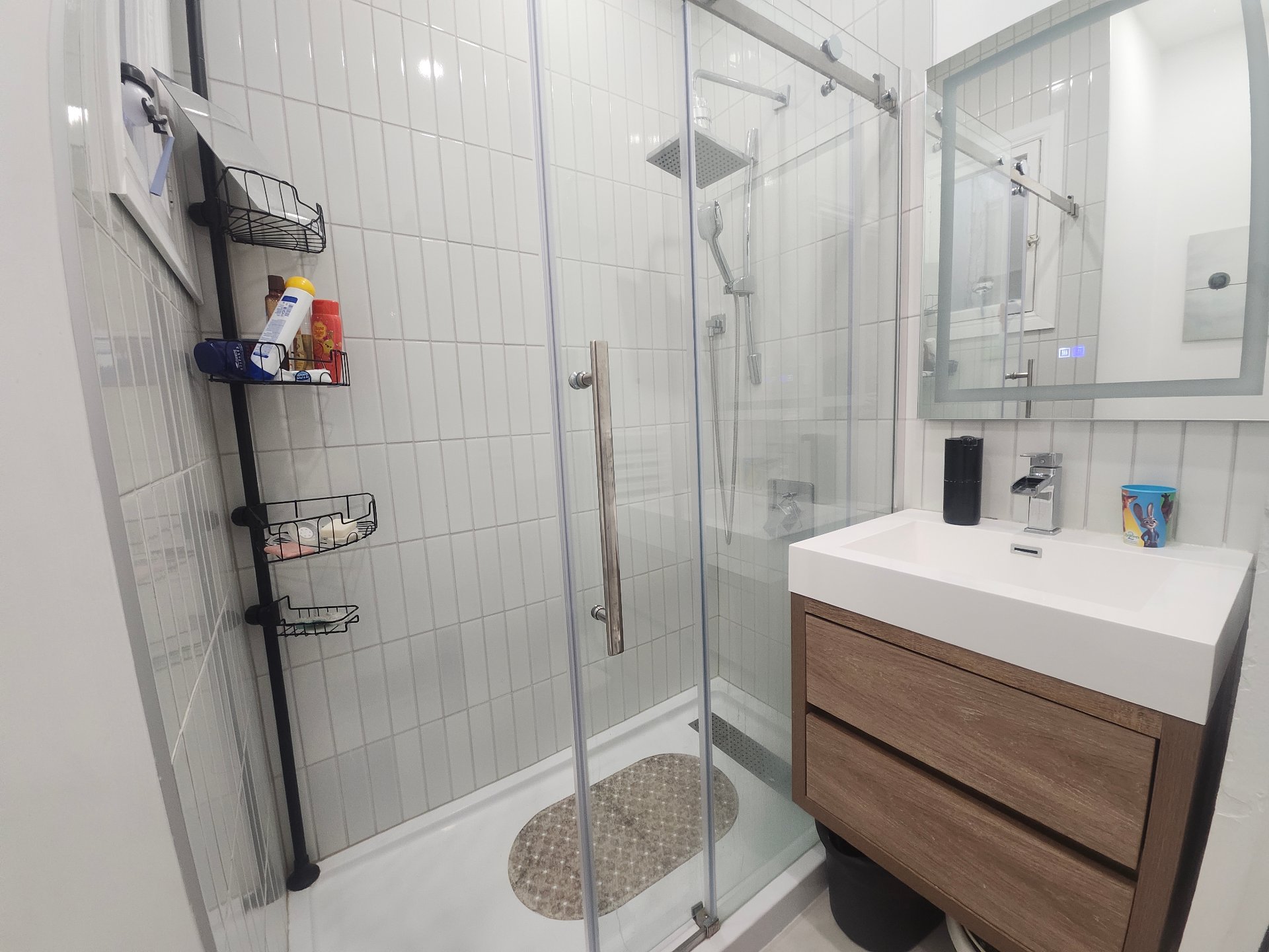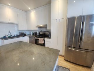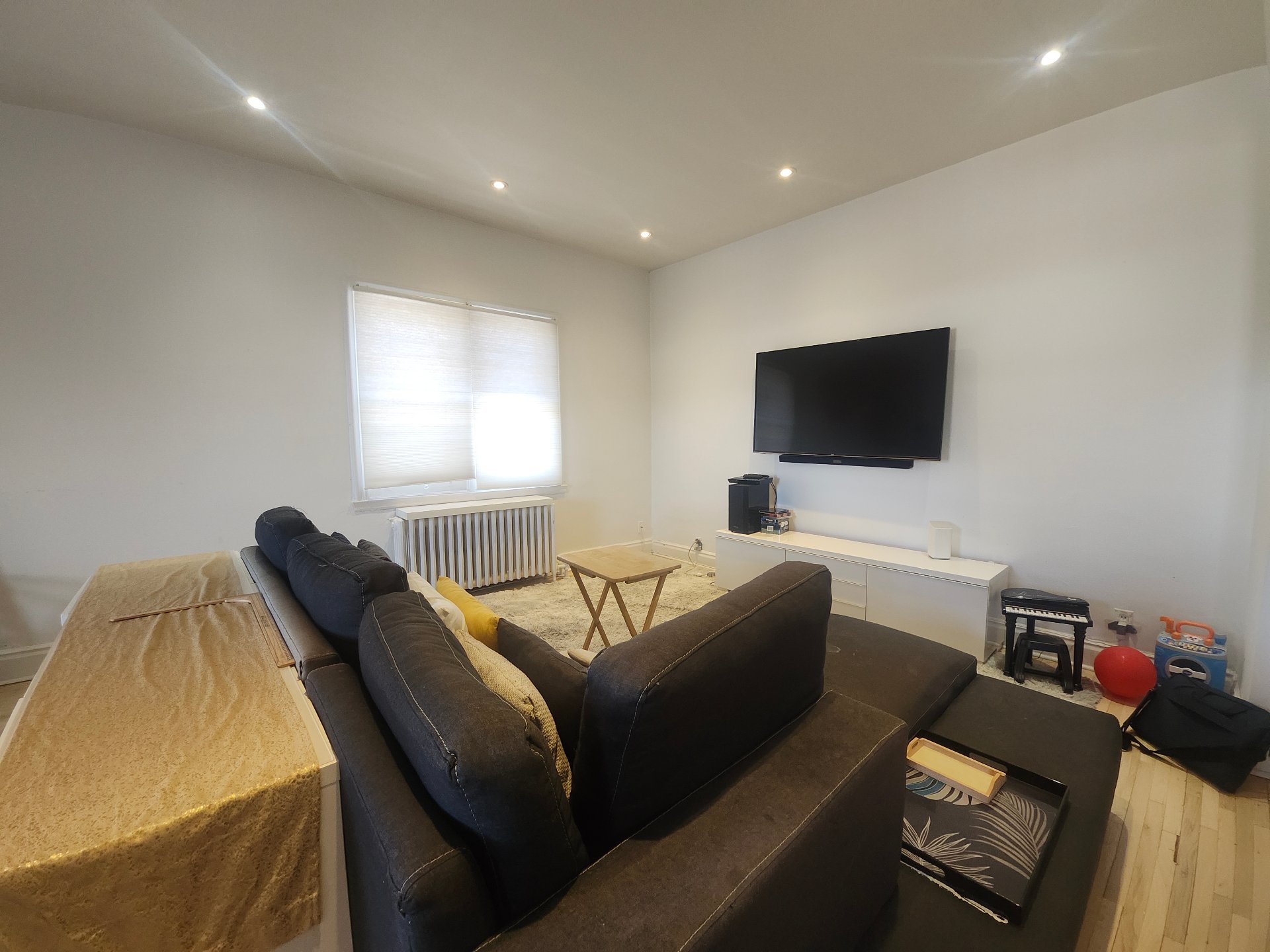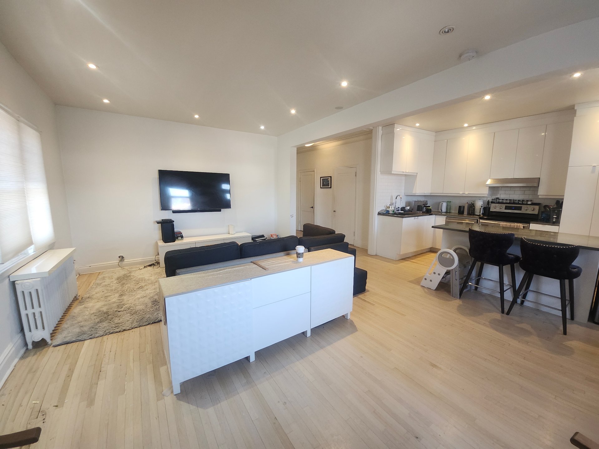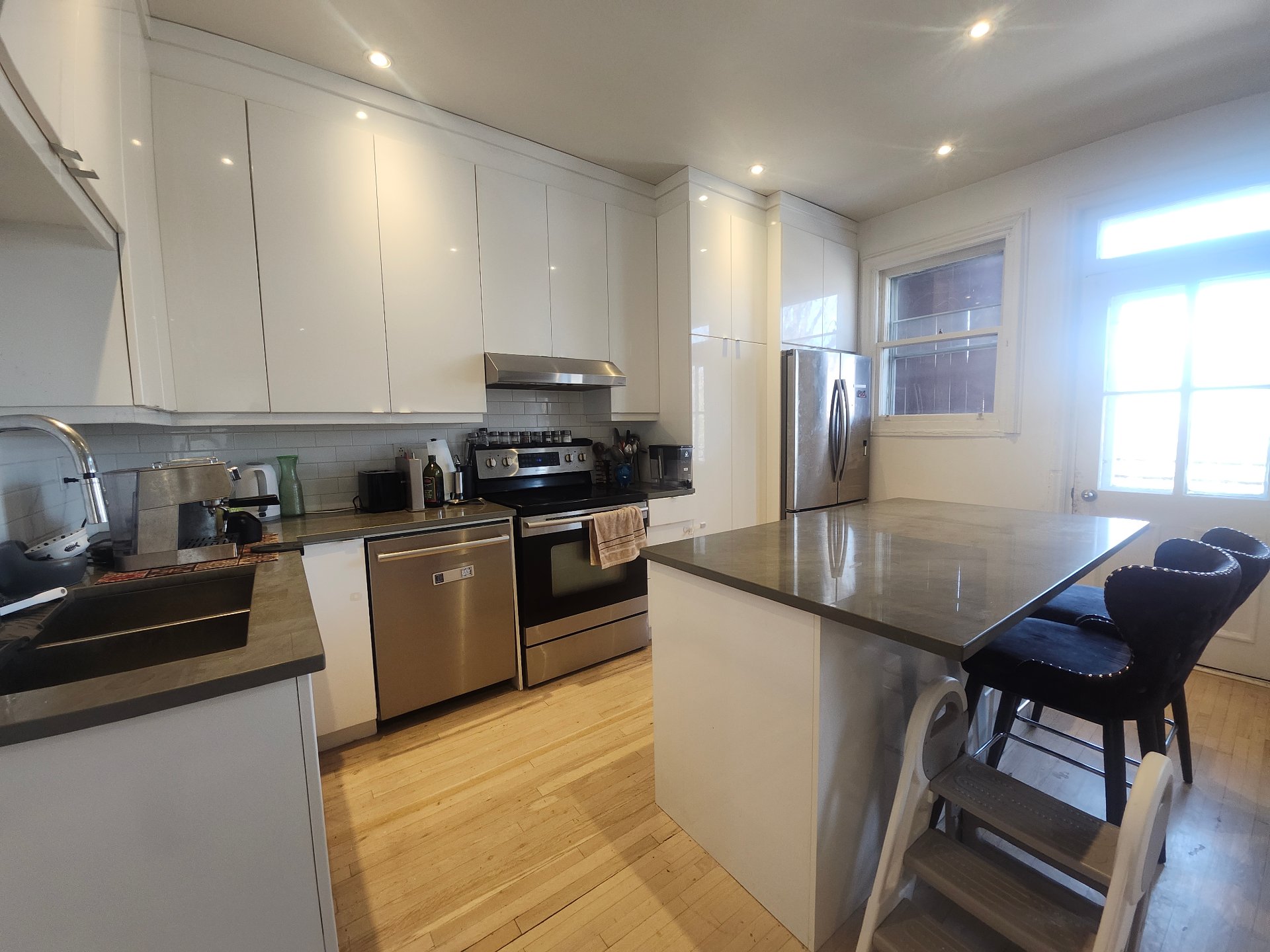 Logement rénové de 3 chambres situé à l'étage supérieur d'un duplex dans le secteur recherché de Notre-Dame-de-Grâce (NDG). Offrant environ 1 200 pi², l'unité propose un espace de vie lumineux à aire ouverte regroupant salon, salle à manger et cuisine. Les cinq électroménagers sont inclus ainsi que la climatisation. Une place de stationnement extérieur et l'accès à une cour arrière partagée sont également offerts. Emplacement idéal à proximité de la station de métro Vendôme, du campus Loyola de l'Université Concordia, du site Glen du CUSM, de parcs, épiceries, cafés et restaurants.