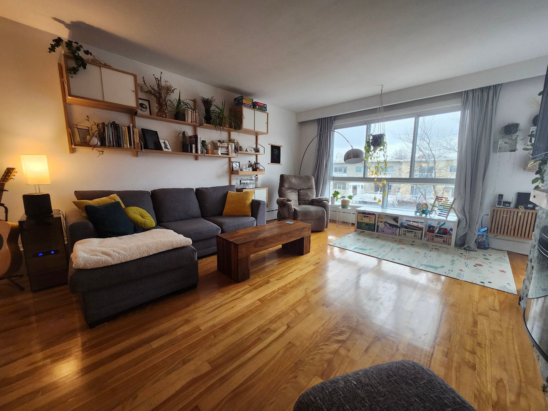 l'espace de vie à concept ouvert séduit par ses planchers
