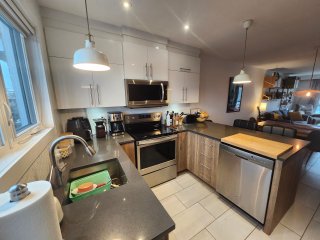 Découvrez cet appartement de 3 chambres à Saint-Léonard, Montréal, parfait pour une vie familiale alliant confort et modernité. Lumineux et chaleureux, il offre une aire de vie à concept ouvert avec de grandes fenêtres et des planchers de bois franc. La cuisine contemporaine, équipée d'appareils en acier inoxydable et d'un large comptoir, ravira les amateurs de gastronomie. Les chambres spacieuses, idéales pour une famille ou un bureau, s'ajoutent à une salle de bain soignée, une buanderie privée et de nombreux rangements. Proche des parcs, écoles et transports. Chauffage et lave-vaisselle inclus.