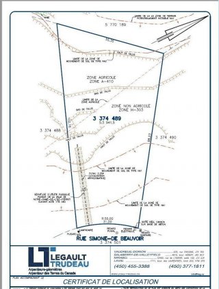 ADRESSE LA PLUS EXCLUSIVE DE Notre-Dame-de-l'Île-Perrot : la rue Simone-de-Beauvoir. Ce magnifique terrain de 42 410 pi² est idéal pour votre projet de construction et bénéficie de son propre accès à l'eau. Il est vendu avec une étude géotechnique complète. Un plan de nivellement des remblais, ainsi que des plans d'architecture et visuels 3D, peuvent également être fournis par le vendeur, à négocier. Zone non inondable. (Voir l'acte de servitude n° 13 160 122 pour les détails relatifs à l'accès à l'eau.) Adossé à une magnifique forêt, le terrain offre une intimité exceptionnelle et un environnement naturel d'une grande tranquilité.