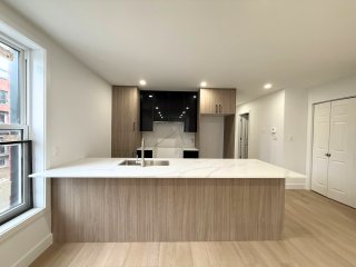 Plusieurs unités sont disponibles. Promotion : 1 mois de loyer gratuit (conditions applicables). Unité neuve à louer offrant un espace de vie moderne et lumineux. Aire ouverte salon/salle à manger avec éclairage encastré et planchers de bois clair. Cuisine contemporaine avec grand îlot en quartz, armoires pleine hauteur et comptoir lunch. Électroménagers inclus : cuisinière, réfrigérateur, laveuse, sécheuse et lave-vaisselle. Deux chambres fermées avec garde-robes, dont une avec accès à l'espace extérieur arrière. Salle de bains moderne avec douche vitrée à l'italienne. Entrée privée et aires communes soignées.
